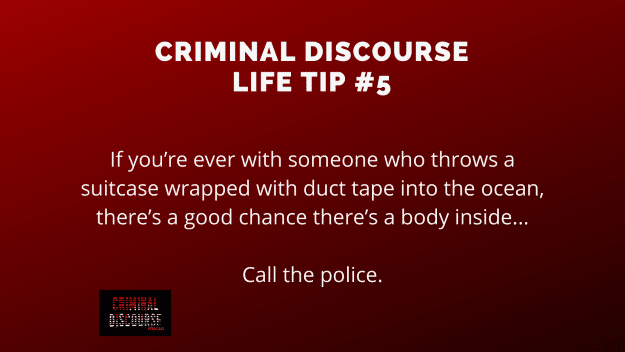 They board the boat of Justo Jose Servign Solano (who had been hired by William the day before). They are out on the water for about 15 min when William asks how deep the water was. Jose responds and states it’ around 35 meters. William secured the suitcase with rope and a heavy object and threw it over the side of the boat.